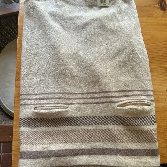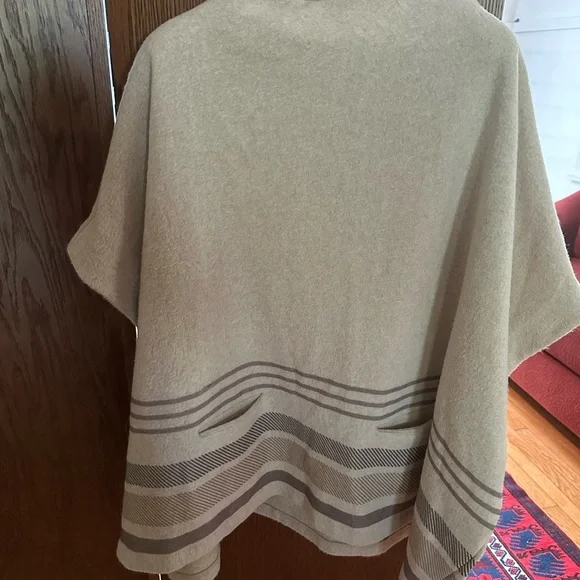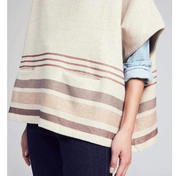 Made of a structured wool blend with a satisfying weight, this high neck, slightly oversized square poncho instantly elevates any look. The contrast stripe pattern is a mood all on its own. Wear it as a light jacket over a tee when it's brisk out, or layer it over a turtleneck when the temp drops way down.*Dry cleanable. Or cold wash, lay flat to dry.
